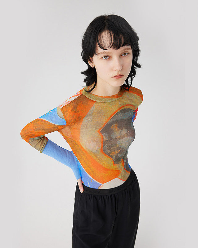 Abstract Mesh Long Sleeve Top