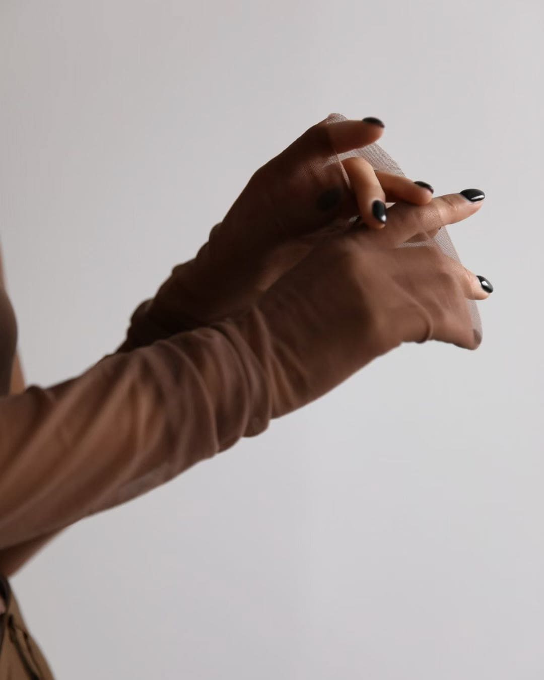Sheer Mesh Mock Neck Top – Coffee Brown Long Sleeve See-Through Blouse