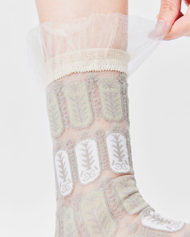 Enjoy delicate support with these Botanic Pattern Sheer Crew Socks in multicolor. Their lightweight, sheer fabric provides breathability while adding a subtle botanical design for a refreshing, stylish touch. Perfect for elevating your look without sacrificing comfort.