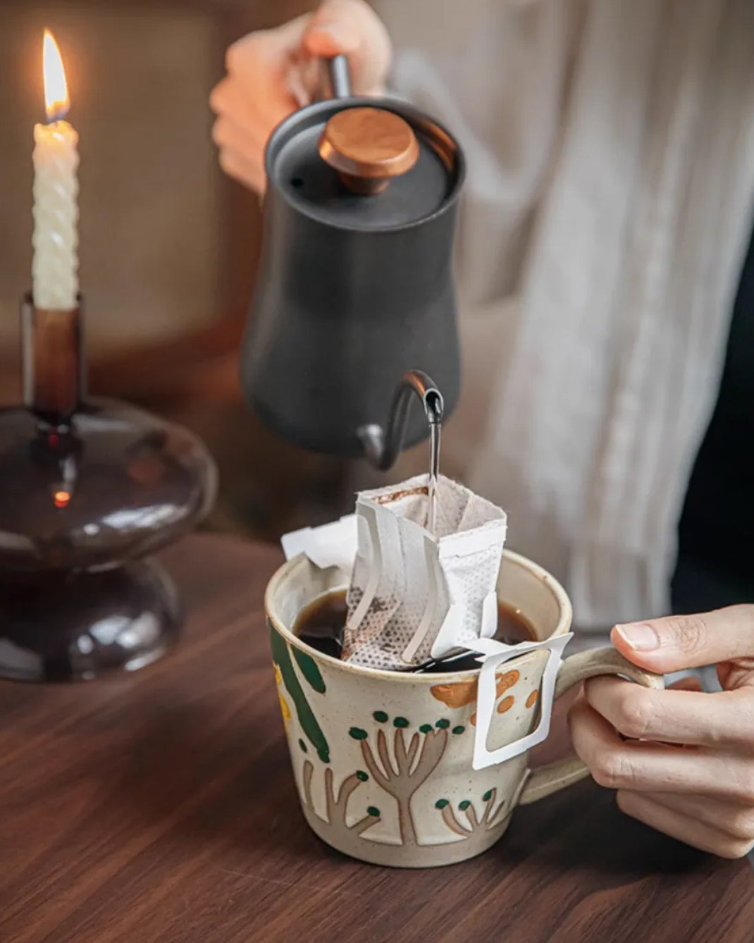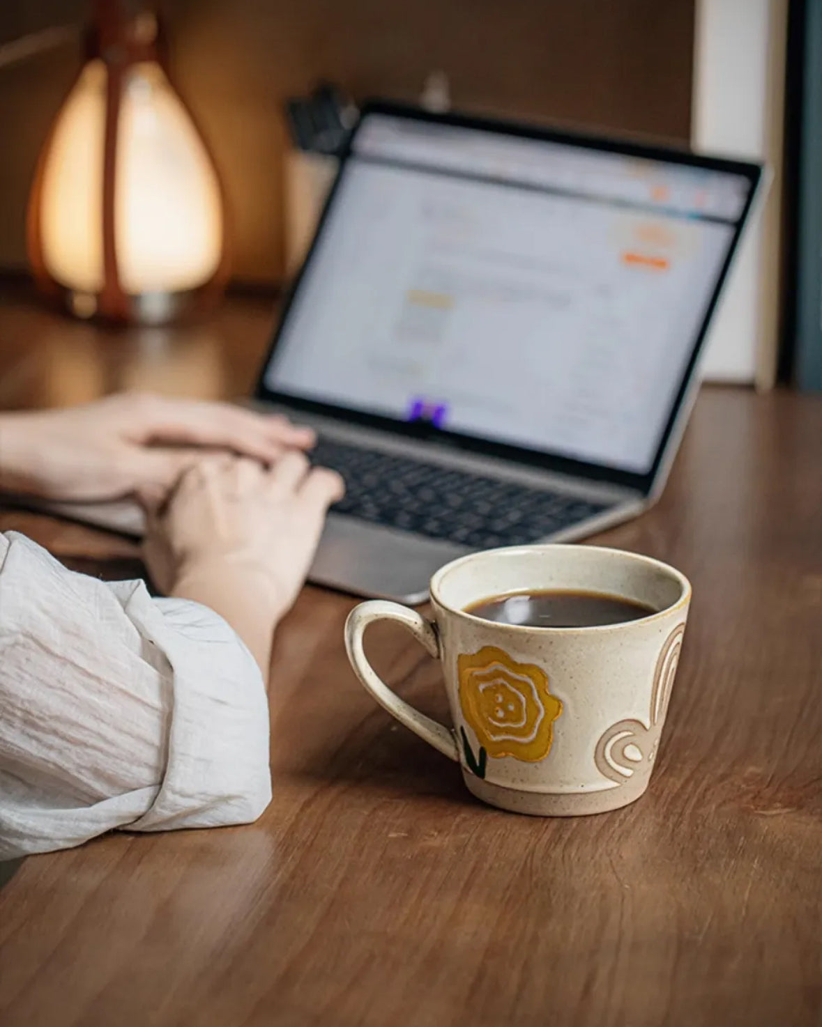 Vintage Hand-Painted Ceramic Mug – Floral Pottery Coffee Cup